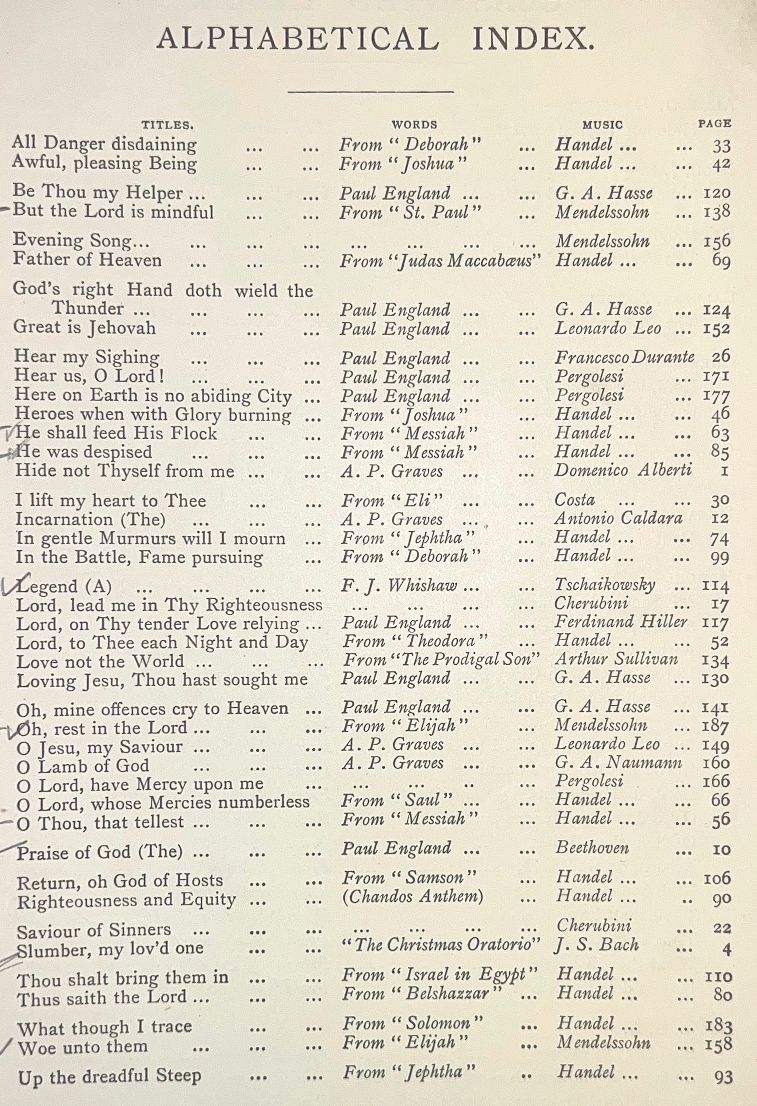 Click on the blue highlighted elements for links to similar or related items Sacred songs (contralto) / Various Composers: [42 songs] Shelfmark Publisher: Instrumentation: Voice-Solo-Contralto Composer: Language(s): Category: