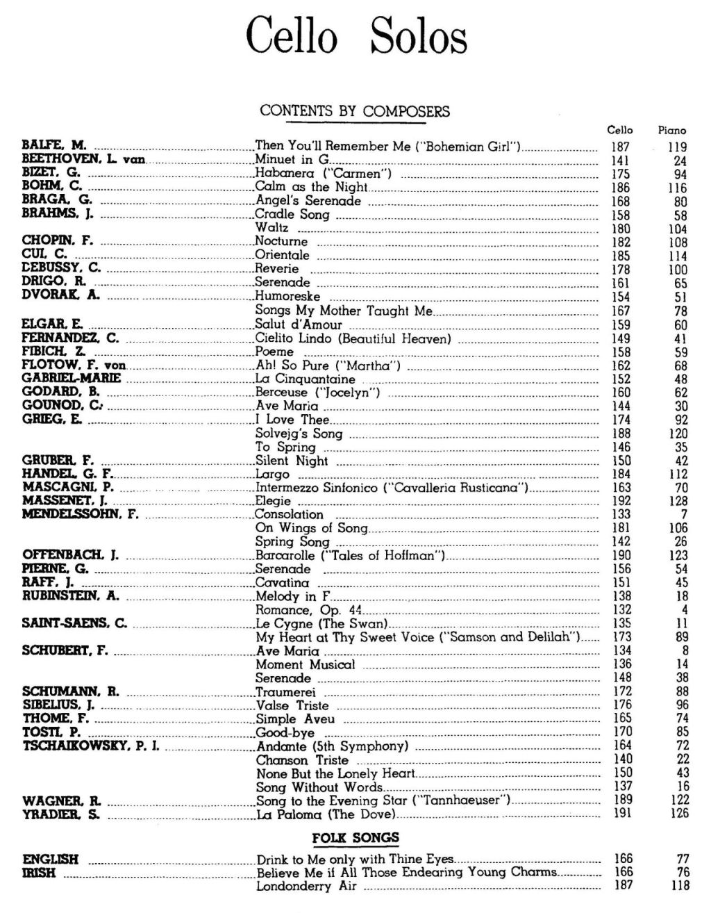 Click on the blue highlighted elements for links to similar or related items Cello solos / Various Composers: [54] easy-to-intermediate arrangements Shelfmark Publisher: Instrumentation: Cello Composer: Category: