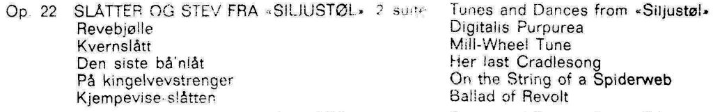Click on the blue highlighted elements for links to similar or related items Tunes and dances from Siljustol (Slåtter og stev fra Siljustøl) 2. Suite Op. 22 / Harald Saeverud Publisher: Instrumentation: Piano Composer: Category: