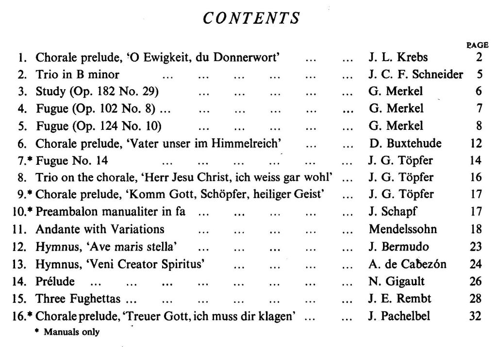 Click on the blue highlighted elements for links to similar or related items Organ book no.1 / Various Composers: [16 pieces]; ed. C. H. Trevor Publisher: Instrumentation: Organ Composer: Editor(s)/Compiler(s): Category:
