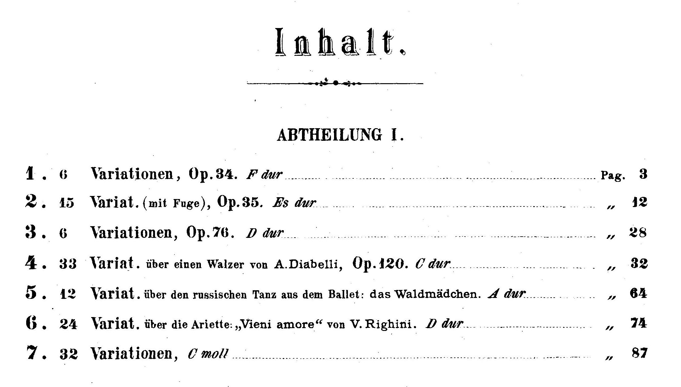 Click on the blue highlighted elements for links to similar or related items Variationen für Pianoforte Abt. 1 / Ludwig van Beethoven; ed. Louis Koehler 21/027-8(1) b Publisher: Instrumentation: Piano Composer: Editor(s)/Compiler(s): Category: Short (Filing) Title: Recordings: