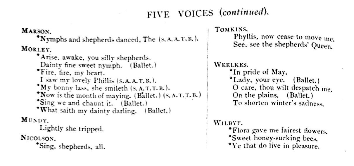 Click on the blue highlighted elements for links to similar or related items [Analytic] Further information: Part 2 of a 'Specimen volume' owned by W.G. Williams (father of RBW) Format:Publisher: Instrumentation: Voice - Quintet (SSATB) Composer: Song Writer/Librettist: Language(s): Category: