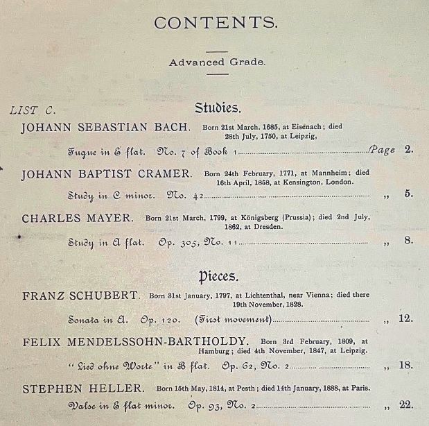 Click on the blue highlighted elements for links to similar or related items Studies and pieces Advanced Grade 1909 List C / Various Composers Publisher: Instrumentation: Piano Composer: Category:
