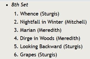 Click on the blue highlighted elements for links to similar or related items English lyrics. Eighth set / Hubert Parry: [6 songs] NB: Publisher: Instrumentation: Voice-Solo or Unison Composer: Language(s): Category: