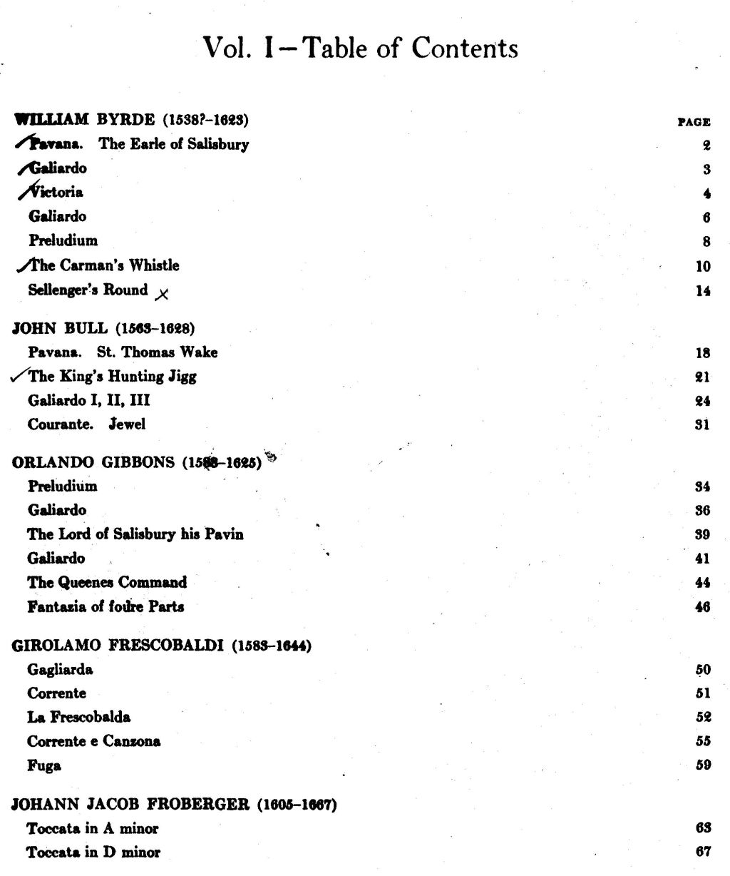 Click on the blue highlighted elements for links to similar or related items Early keyboard music, vol. 1 / Various Composers: collection of [65] pieces written for the virginal, spinet, harpsichord & clavichord; ed. Louis Oesterle Publisher: Instrumentation: Harpsichord; Virginal Composer: Editor(s)/Compiler(s): Category: